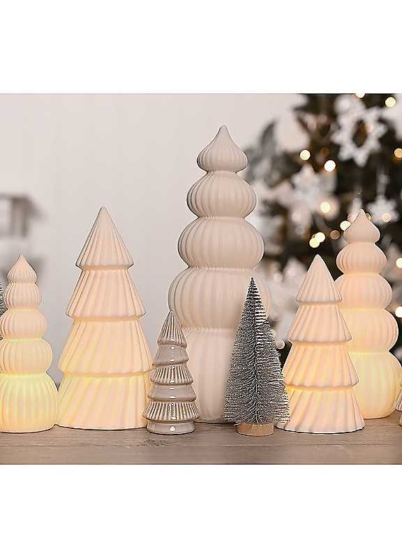 Illuminate the festive season with this Ceramic 20cm LED Light Up Christmas Tree. This elegantly crafted piece brings a magical glow, capturing the joy and spirit of Christmas. Made from ceramic, this 20cm tall tree features a textured surface, enhancing its charm. It's adorned with a battery-operated LED light, emitting a warm, inviting glow. Its neutral white colour makes it versatile for any decor style.Indoor use onlyRequires 3 x LR44 batteries (not included)Dimensions approx. 20H x 8W x 7D cm