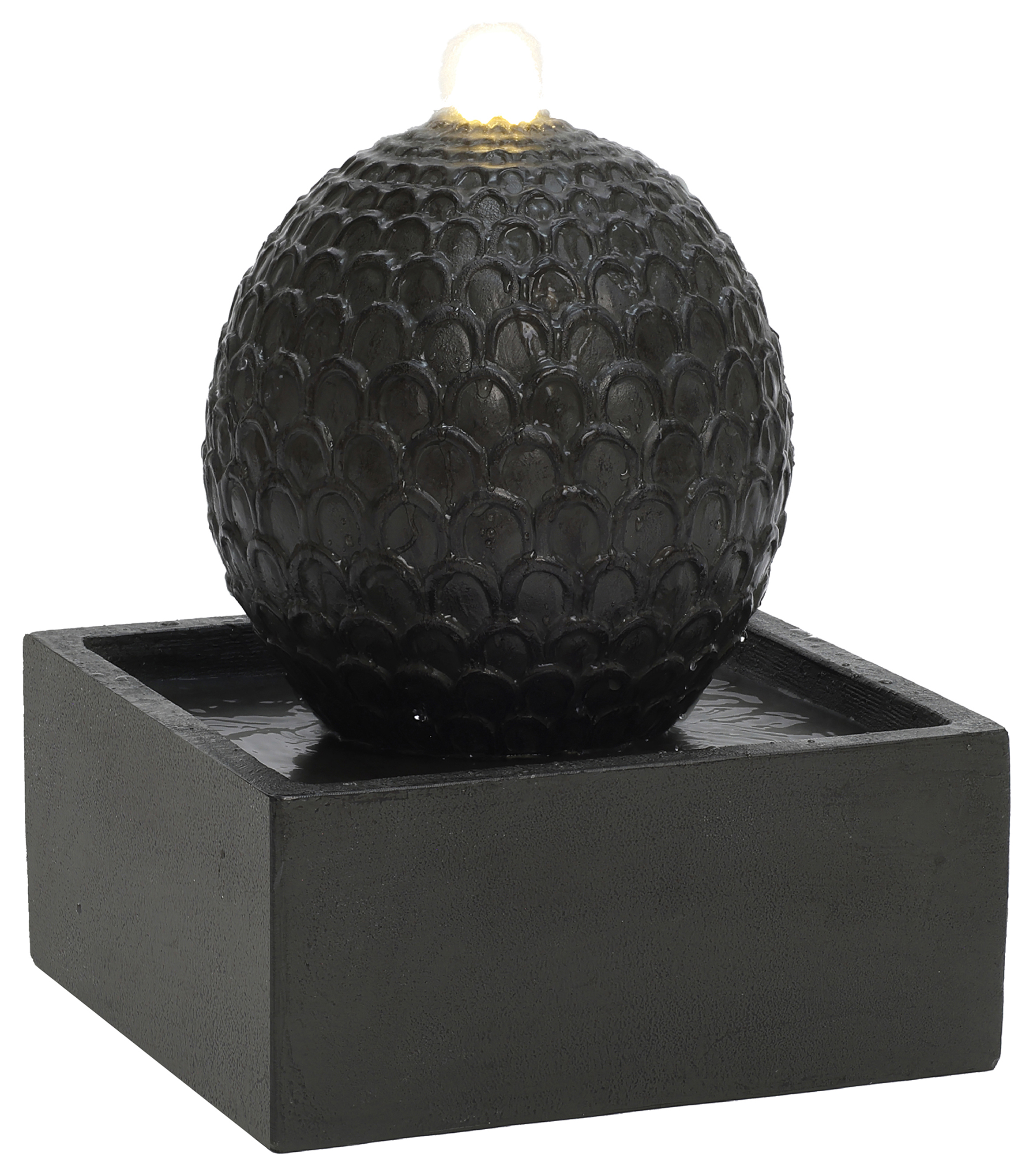 Charles Bentley Arno Water Feature - Transform your garden or patio with our elegant Arno Sphere Water Feature, featuring a sleek rounded design that creates a smooth, continuous flow of water and gentle, soothing sounds. Built-in LED lights softly illuminate the water movement, bringing a tranquil glow to your outdoor space from dusk through evening, perfect for masking urban noise and creating a peaceful retreat. Crafted from durable polyresin with a contemporary dark grey finish that brings modern sophistication to both traditional and contemporary garden styles. Its weatherproof, frost-resistant construction and UV-resistant finish ensure this water feature withstands the elements throughout the seasons. Mains powered with simple installation. Just position on a flat surface, fill with water, and plug into a standard UK socket using the 5-metre cable. At 36cm tall with a compact 31cm footprint, it creates visual impact without overwhelming smaller spaces.