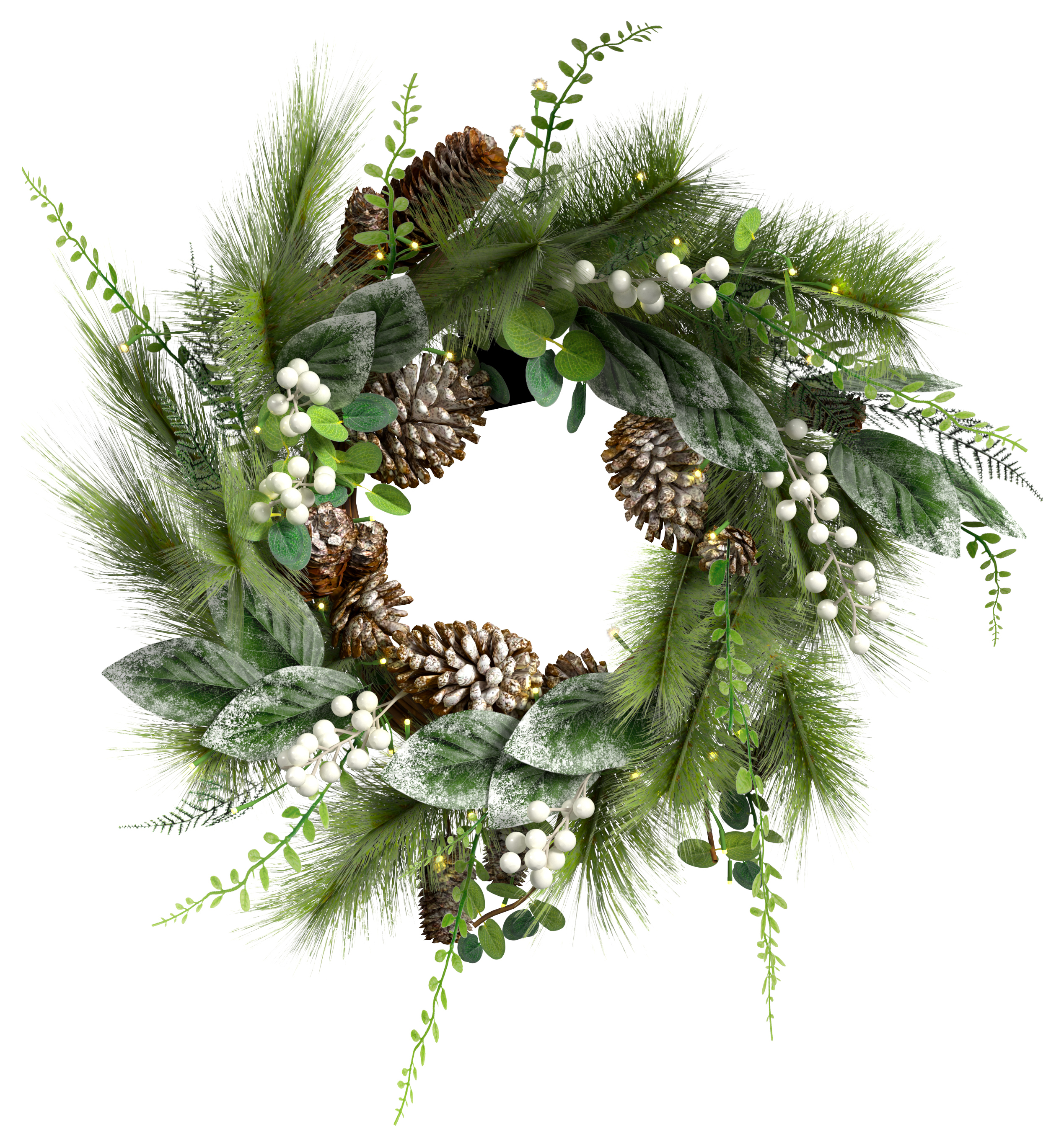 Charles Bentley Indoor Outdoor 55cm Pre-Lit White Berry & Pinecone Eucalyptus Wreath