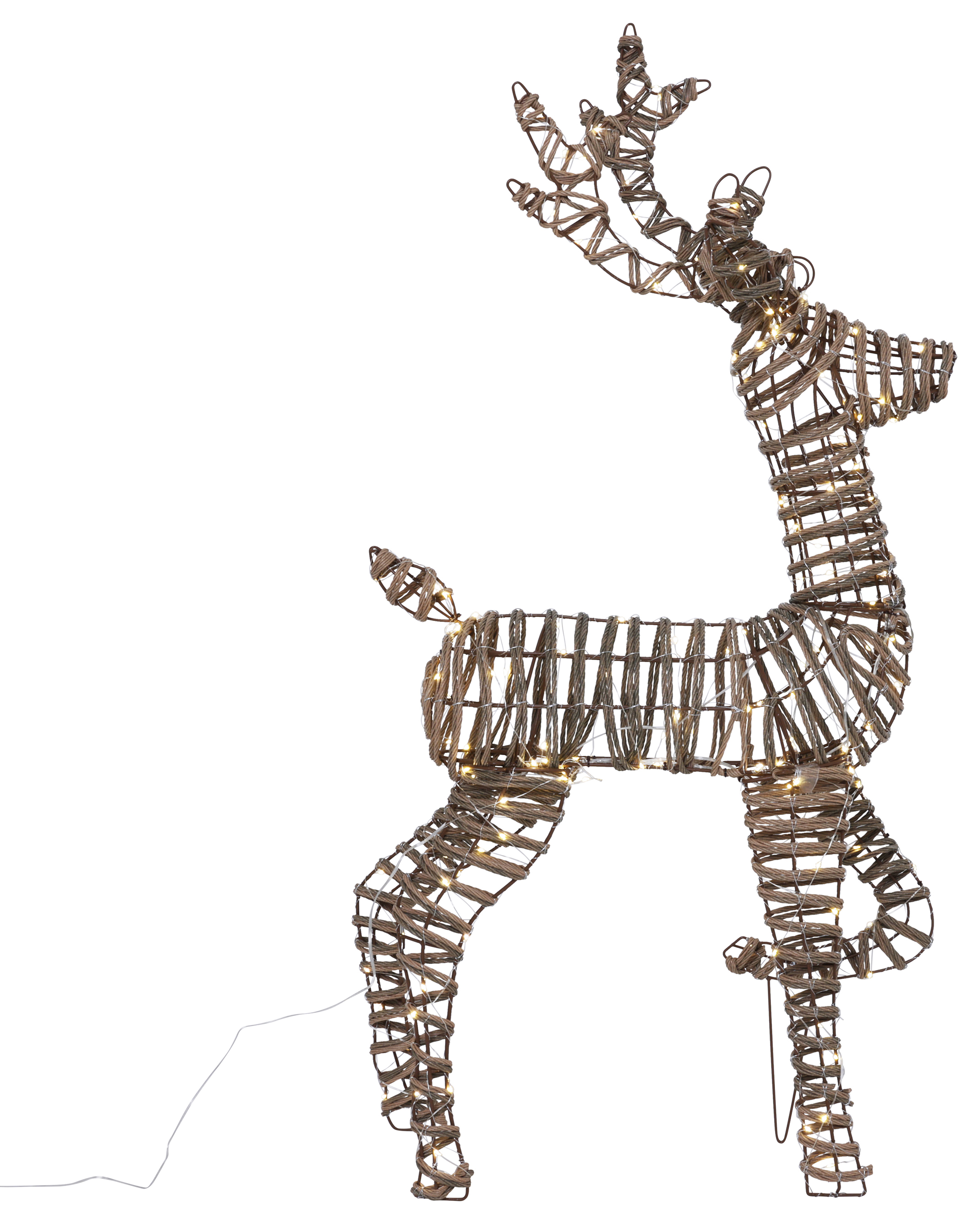 Charles Bentley Large Rattan Light Up Reindeer - Add a festive sparkle to your home or garden with our large light up Reindeer, a charming addition to your Christmas display that brings warmth and magic to any setting. Crafted from natural-look rattan woven around a brown metal frame, this elegant deer is wrapped in glowing white Micro LED lights, creating a beautifully soft, seasonal glow. Designed for ease and practicality, the reindeer features a built-in timer (8 hours on, 16 hours off), so you can enjoy coming home to a beautifully lit entrance way with no need to switch on or off all season long. It's suitable for both indoor and outdoor use, and comes supplied with miniature cable ties and ground pegs for added stability in your garden. The reindeer can be disassembled if required for stress-free storage. Whether standing proudly on your lawn or adding a whimsical touch indoors, this elegant deer is the perfect way to light up the season.