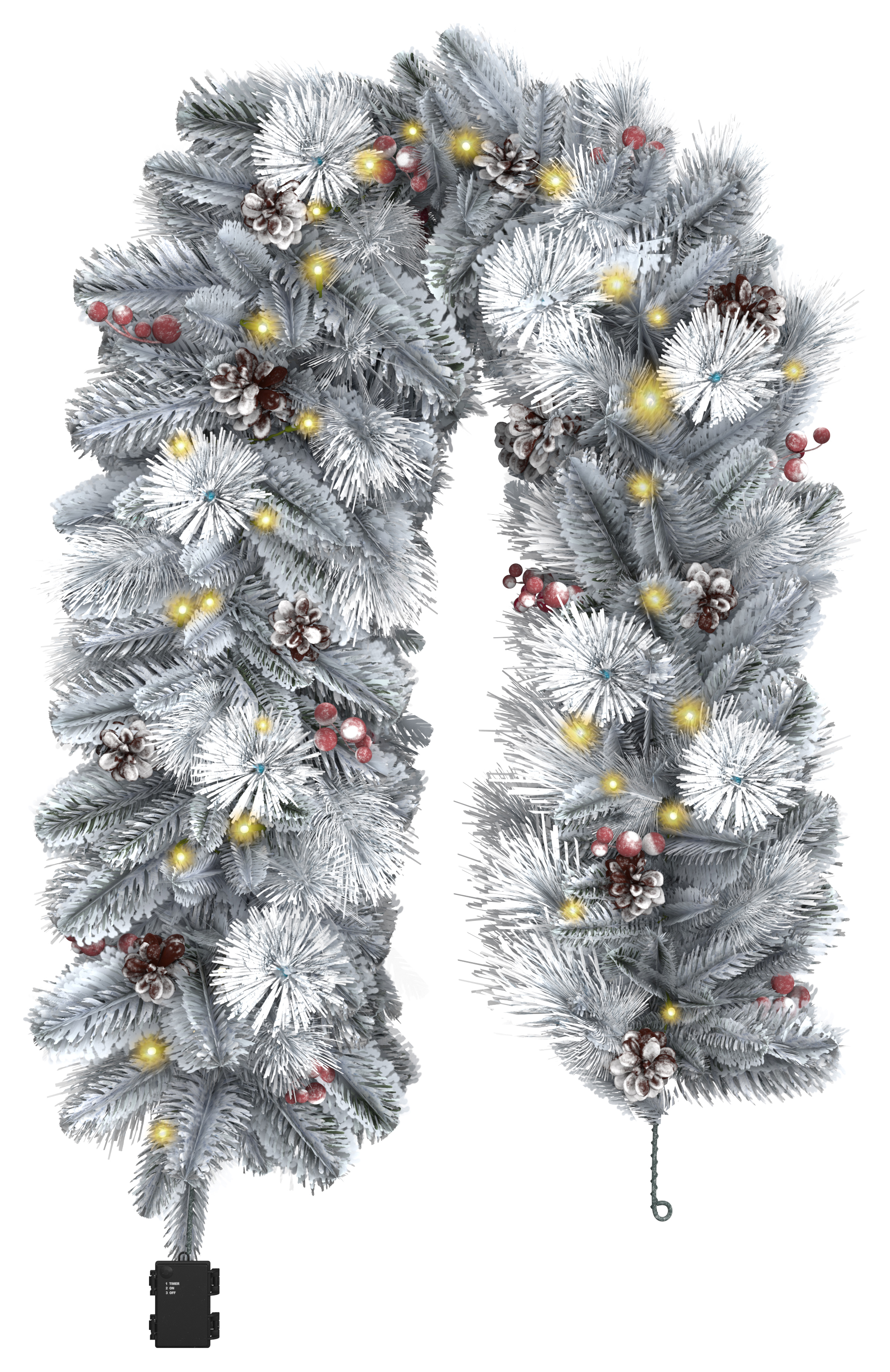 Charles Bentley Pre-Lit Snowy Red Berry and Pinecone Garland