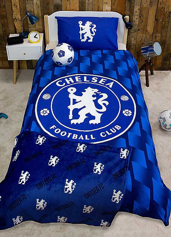 Come on you Blues! Perfect for any young Chelsea fan, this officially licensed Chelsea Football Club bedding set includes a duvet cover and pillowcase(s). The bedding set features a reversible design, perfect for when you want to freshen up the look of your child's bedroom. The main front side is inspired by Chelsea's official colours, with a two-tone striped pattern in blue, with the Chelsea club crest in the centre. The matching pillowcase is blue with the Chelsea lion in the centre. The reverse side features a harlequin argyle style pattern in blue with the Chelsea lion repeated on a white background, with the pattern repeated on the pillow. The duvet cover is closed with poppers, so it's easy to remove and wash, and is both washing machine and tumble dryer safe.The bedding is made from recycled materials, and is a cotton and polyester mix, so not only is your child supporting their favourite team, they're also supporting the environment! The single duvet cover measures 135 x 200cm, and the pillowcase included is a standard UK size of 74 x 48cm. The double duvet cover measures 200 x 200cm, and the 2 x pillowcases included are a standard UK size of 74 x 48cm.Reversible designPopper fasteningMachine washableTumble dry on a low temperatureIron on reverse52% BCI Cotton, 48% Recycled Polyester