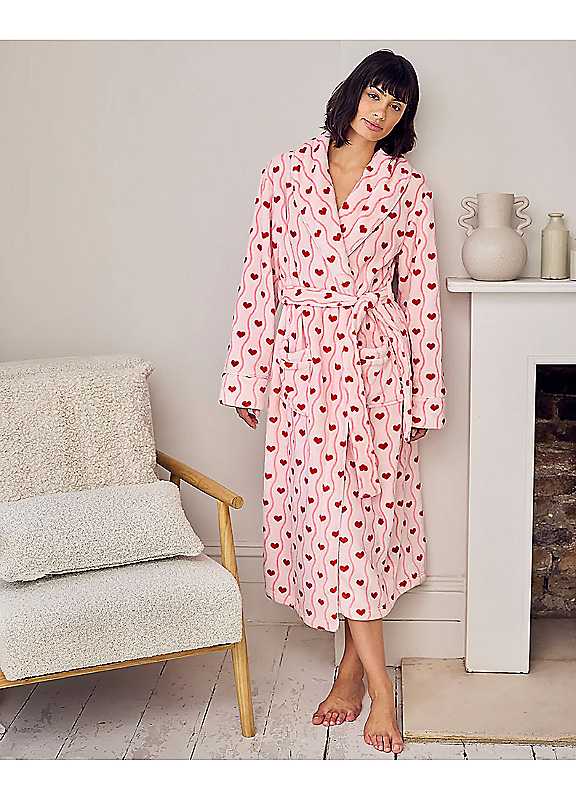 Wrap yourself in warmth with this plush, heart patterned robe designed to make every morning feel a little sweeter. Soft, cosy, and effortlessly charming. It's the perfect layer for lounging in comfort and loveMachine washable100% Recycled PolyesterKeep away from fire.