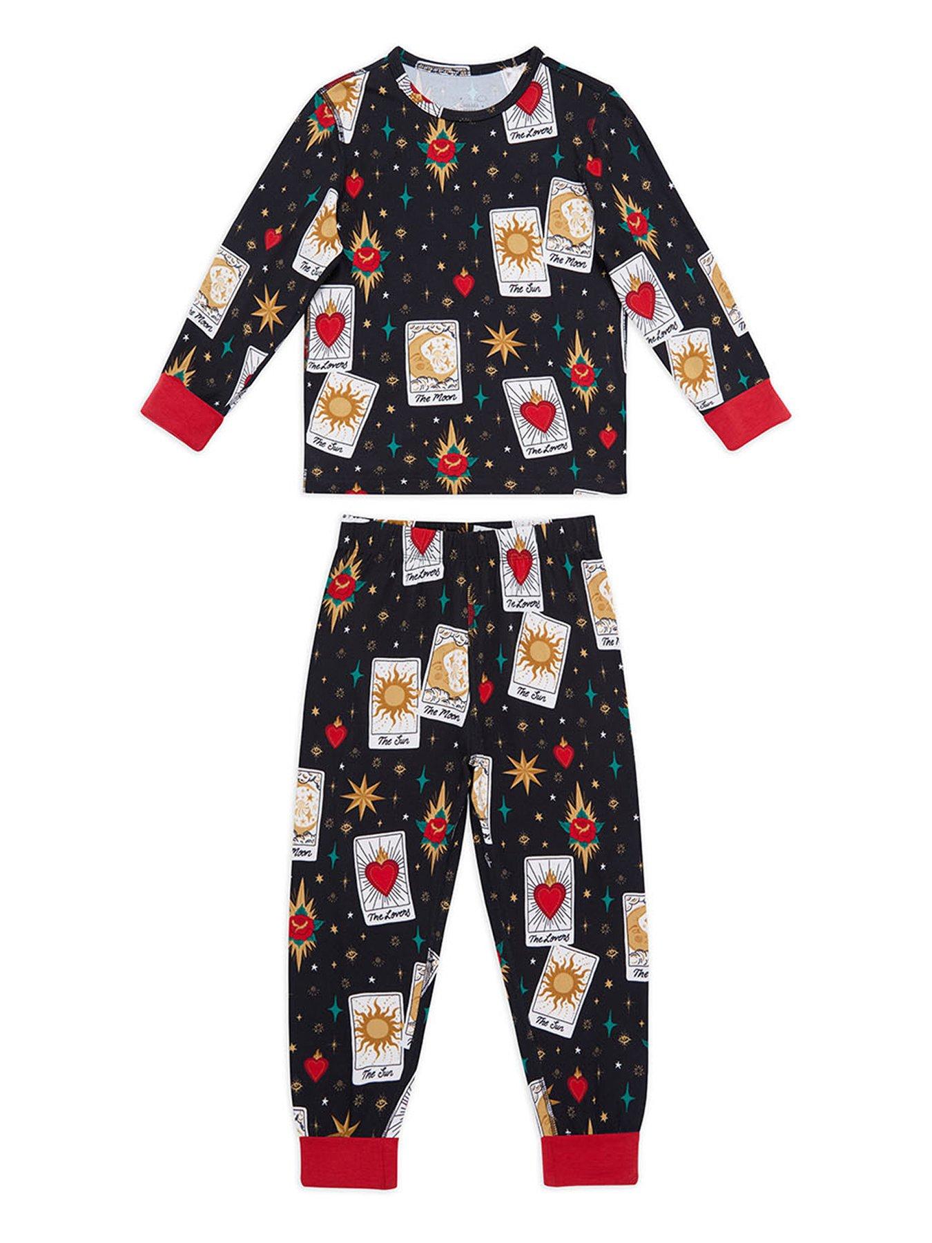 Chelsea Peers Unisex Kids Tarot Card Print Pyjamas With Extendable Cuffs - Black, Black, Size - Black - 3-4 YEARS