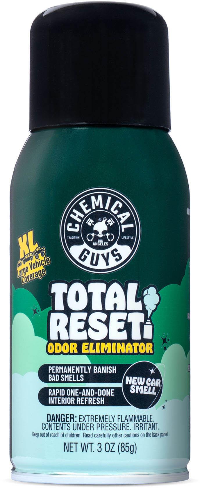 Refresh your ride's interior and destroy nasty smells at their source with Chemical Guys Total Reset Odor Eliminator, the ultimate auto air freshener spray. This car interior fogger's XL 3 oz size is powerful enough to tackle bigger vehicles with just one canister, harnessing your ride's A/C system and reaching deep into vents, carpets, and hidden nooks where foul smells like to hide. This odor neutralizer for cars binds to odors, eliminating them at a molecular level like they were never even there, and neutralizing stubborn odors like pet smells, food, sports gear, and smoke. This one-and-done car odor removal spray blasts away unpleasant smells wherever they may be hiding and leaves your car, truck, SUV, or RV's interior filled with a crisp, invigorating scent!