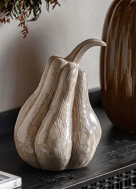 A must have for any Autumnal decor, this ceramic pumpkin will set the scene with its charming detail and soft brown glaze.100% CeramicDimensions approx. 21.5 x 16.5 x 17 cm