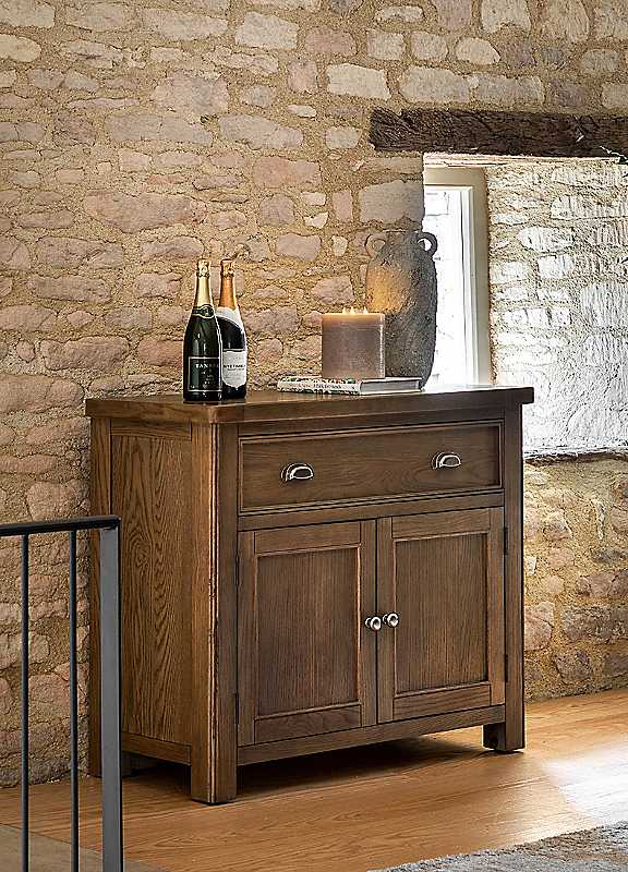 Discover essential storage with this beautiful sideboard. Featuring a spacious double-door cupboard and a single drawer, the sideboard offers versatile storage for living spaces, hallways, kitchens and more. The warm wood finish highlights the natural grain of the oak solid & veneers, complemented by classic metal handles, making it a perfect blend of timeless style and everyday functionality for any room.Ready assembledWeight of product: 30 kgWeight capacity: 160 kgClearance from floor 81.8 cmWall anchor kit included - YesWipe clean onlyOak, Oak Veneer, Pine, MDFOverall assembled dimensions approx. 86H x 106W x 44D cmPlease remember to measure your available space before ordering. If using on an un-carpeted floor we recommend rubber or felt protection pads be used under the legs to avoid damage to your floors.