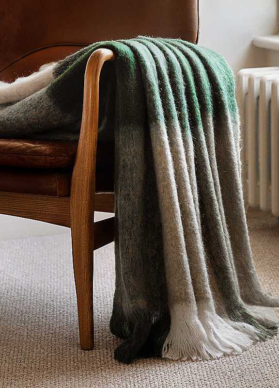 This soft green check faux mohair throw is cosy and warm, perfect for colder winter nights.Outer: 80% Polyester, 20% Acrylic, Reverse: 100% PolyesterSize approx. 130 x 170 cm