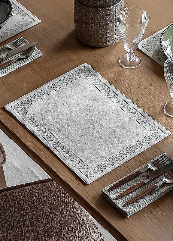 Beautifully subtle style for your table, with natural cotton fabric for a high quality look and comfortable feeling to use, offset by delicate graphic printed leaf pattern. The placemats are a high quality feel, perfect for practical use and sophisticated style, these table additions are great for entertaining.Pack of 4Machine washable at 30°CTumble dry on low/Line dryIron on low heat100% CottonEach placemat size approx. 30 x 40 cm