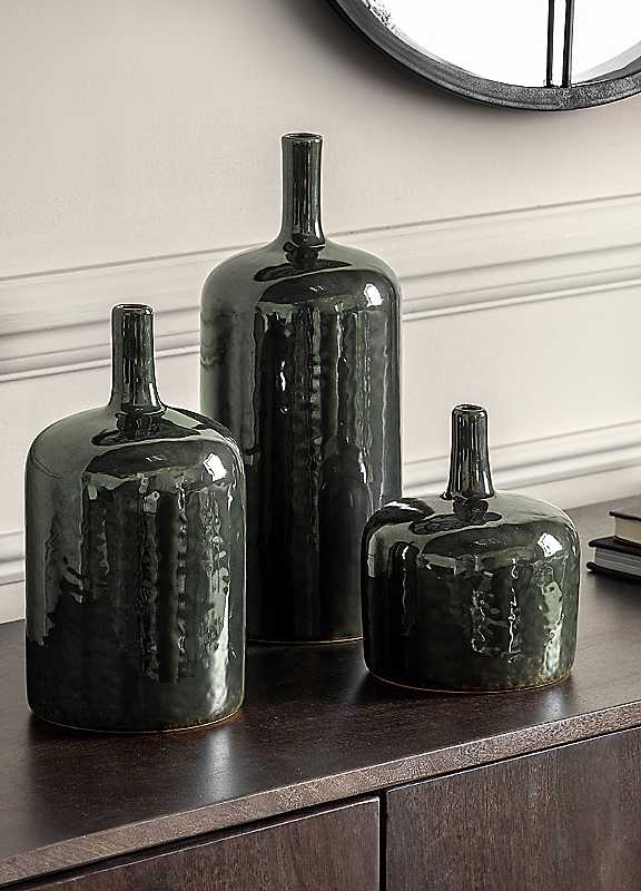 Set of 3 Ornaments look lovely grouped together. The stunning shapes are highlighted by the gloss glaze.Ceramic 100%