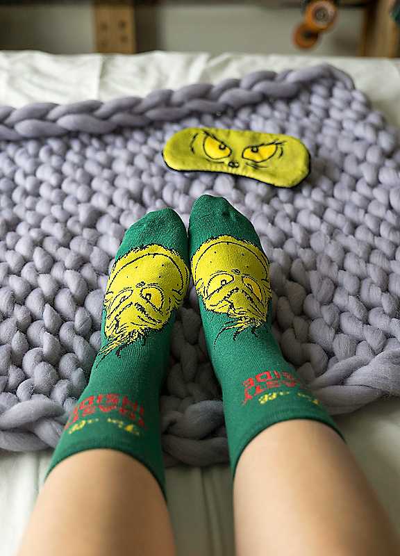 The perfect festive gift for Grinch fans and humbugs alike! Being anti-social is what The Grinch does best, so you can count on this sock and sleep mask set when it's time to shut off from the rest of the world. The hilarious eye mask is great for Christmas Day napping, whilst the character socks will work to keep you nice and snug!Rubber- 71% polyester - 17% acrylic-10% polypropylene- 1% Elastne