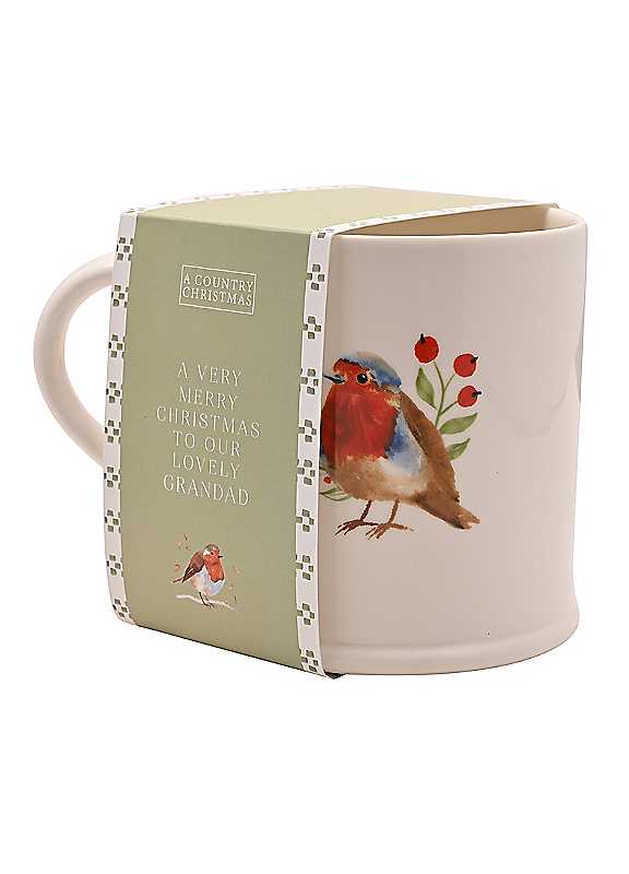 The Christmas Gift Co. proudly presents our 'Country Christmas' range, capturing the cosy, rustic charm of a snug country retreat.Introducing our delightful Robin Mug - Grandad, a charming addition to your morning routine or afternoon tea. The vibrant illustration of a red bird perched on a branch with red flowers adds countryside whimsy to your table.Features a delicate robin perched on a branchComfortable size for a satisfying cup of tea or coffeeWith 'A very Merry Christmas to our lovely Grandad...' message on packaging