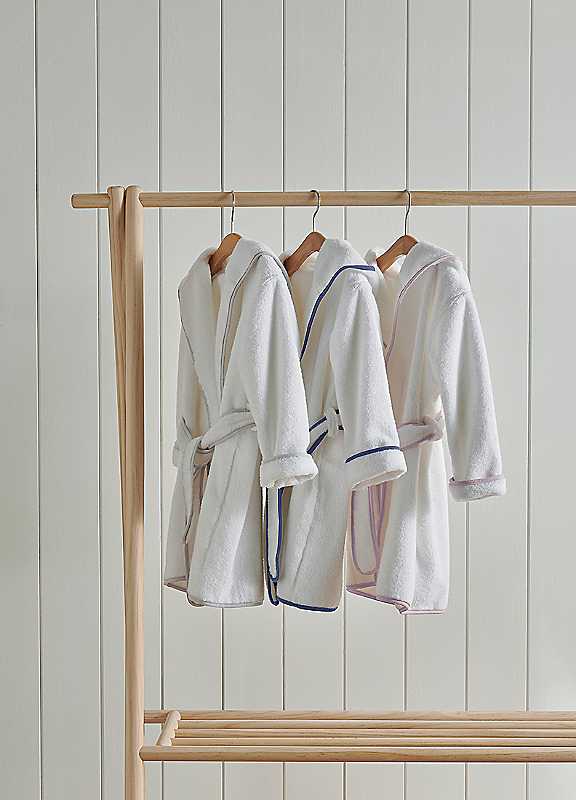Keep your little one snug with the Christy Mini kids and baby bathrobe. Crafted from 100% GOTS Certified Organic cotton, this soft, absorbent robe is perfect for extra warmth and comfort. Designed with care, it features a hood and a contrast piped edge in grey, pink, or denim blue. A warm, gentle hug for delicate skin, this classic Mini robe combines practicality with style. 500GSM Machine washable Line dry for your robe's longest life, otherwise tumble dry on medium heat 100% GOTS Certified Organic Cotton