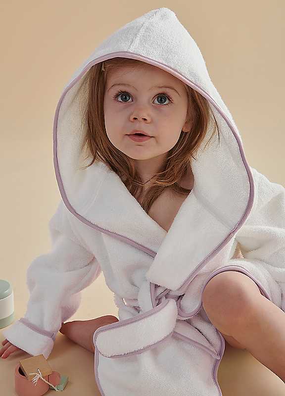 Keep your little one snug with the Christy Mini kids and baby bathrobe. Crafted from 100% GOTS Certified Organic cotton, this soft, absorbent robe is perfect for extra warmth and comfort. Designed with care, it features a hood and a contrast piped edge in grey, pink, or denim blue. A warm, gentle hug for delicate skin, this classic Mini robe combines practicality with style. 500GSM Machine washable Line dry for your robe's longest life, otherwise tumble dry on medium heat 100% GOTS Certified Organic Cotton