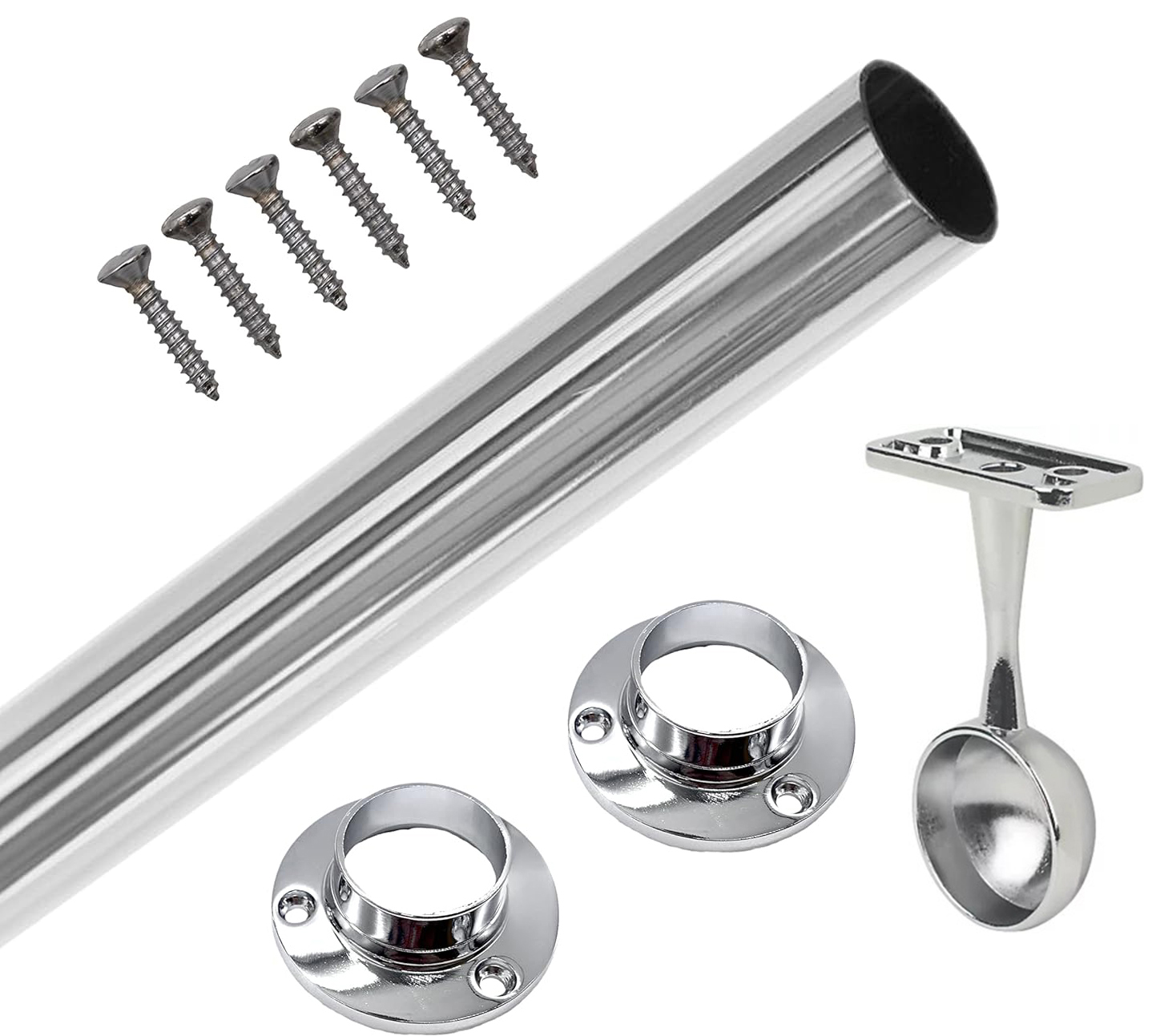 Chrome Rail Kit with Fittings - 4ft x 19mm - This rail kit can fit several applications, such as a standard wall-to-wall rail or a hanging rail. It's a versatile choice for both home and commercial use.