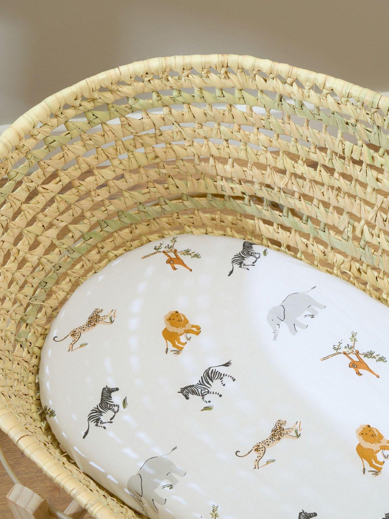 Your Little One Will Love Drifting Off To Dream The Wildest Dreams On These Clair De Lune Jungle-Themed Moses Basket Sheets. Safari-Inspired Design These Fitted Sheets Feature An Array Of Safari-Inspired Animals, Bringing The Adventurous Spirit Of The Jungle To Your Baby'S Nursery. Comfortable And Breathable Crafted From A Cotton-Rich Fabric Blend, These Sheets Prioritise Breathability For Your Baby'S Comfort. The Softness Of The Material Ensures A Cosy Sleeping Environment While Maintaining Airflow For A Peaceful Rest. Stylish Sophistication Alongside The Jungle-Themed Print, The Pack Includes A Soft Grey Polka Dot Sheet, Adding A Touch Of Elegance And Sophistication To Your Baby'S Sleeping Area. Effortless Maintenance The Fitted Sheets Are Fully Machine Washable, Allowing For Easy Cleaning And Maintenance. Perfect Fit With Fully Elasticated Edges, These Sheets Are Tailored To Fit Moses' Basket Mattresses Measuring 74 X 30 Cm, Ensuring A Snug And Secure Fit. Good To Know: Fabric: 60% Cotton/40% Polyester Dimensions: 74 X 30 Cm Machine Washable