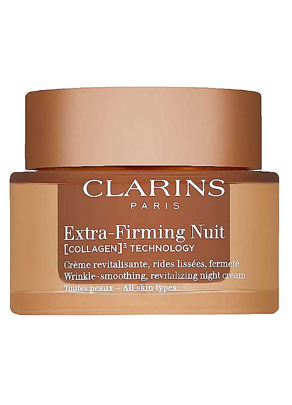 Wake up to firmer, more radiant skin with the extra-firming night cream for all skin types. This luxurious night cream works while you sleep, leveraging exclusive (collagen)3 technology. This powerful trio of active ingredients, collagen polypeptide, pecan tree extract, and organic mitracarpus extract effectively targets and supports skin's natural collagen. Plus, niacinamide, a youth-boosting molecule, helps improve skin texture and enhances its natural radiance. Reveal a smoother, more revitalised complexion by morning. How to Use: Apply evenings to the cleansed face, avoiding the eye contour area.