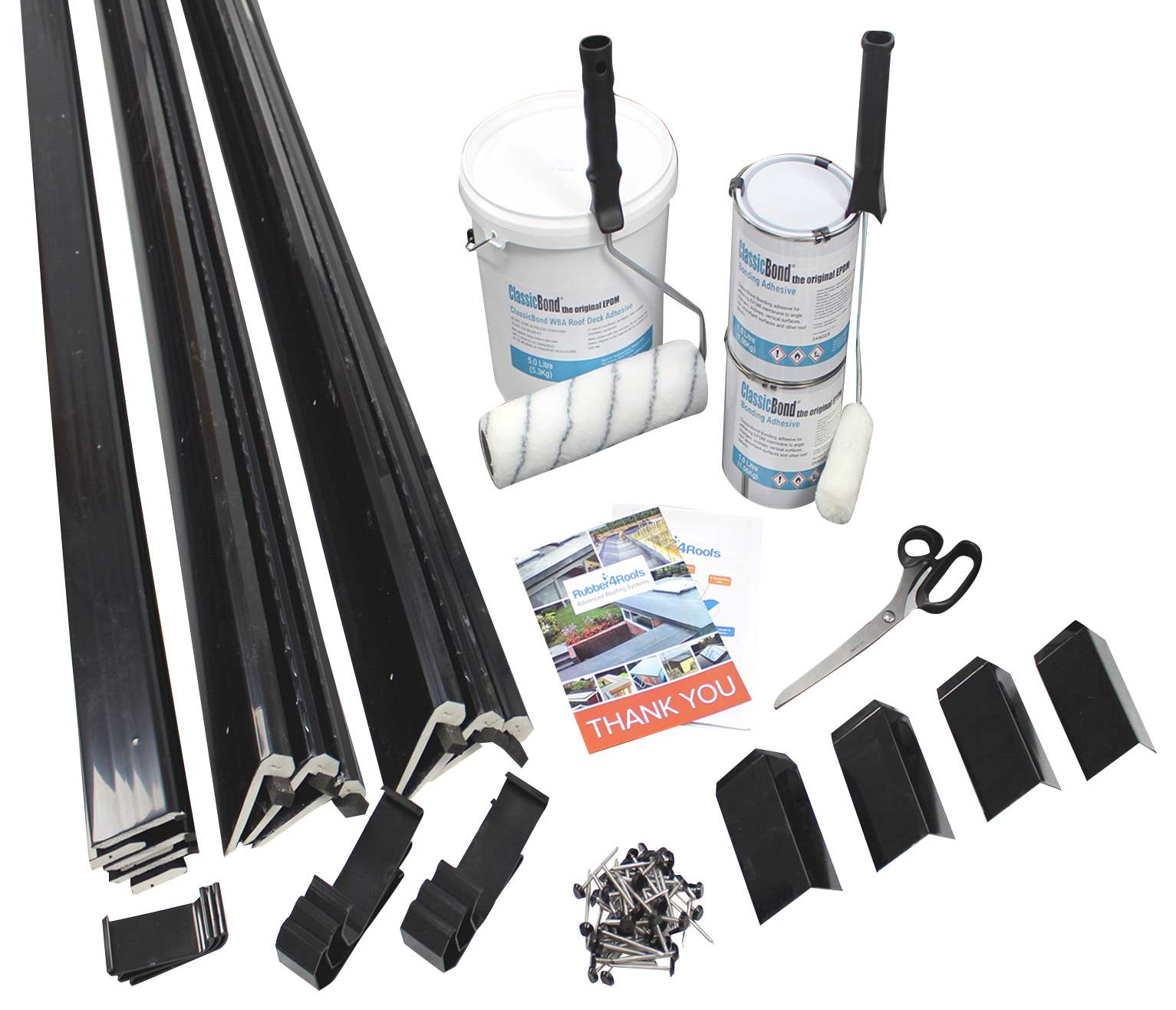 ClassicBond Garage Roof Kit with White Trim - 3 x 6m - This Garage Rubber Roof Kit from ClassicBond is designed to be used for free standing structures where the gutter is found along the longest edge. They are easy to install, look great and have a life expectancy of up to 50 years. EPDM (ethylene propylene diene monomer) rubber membranes will not crack, blister or peel. This kit includes; 1.2mm one-piece EPDM rubber membrane, adhesives and edging trims. The ideal solution for re-covering or refurbishing.