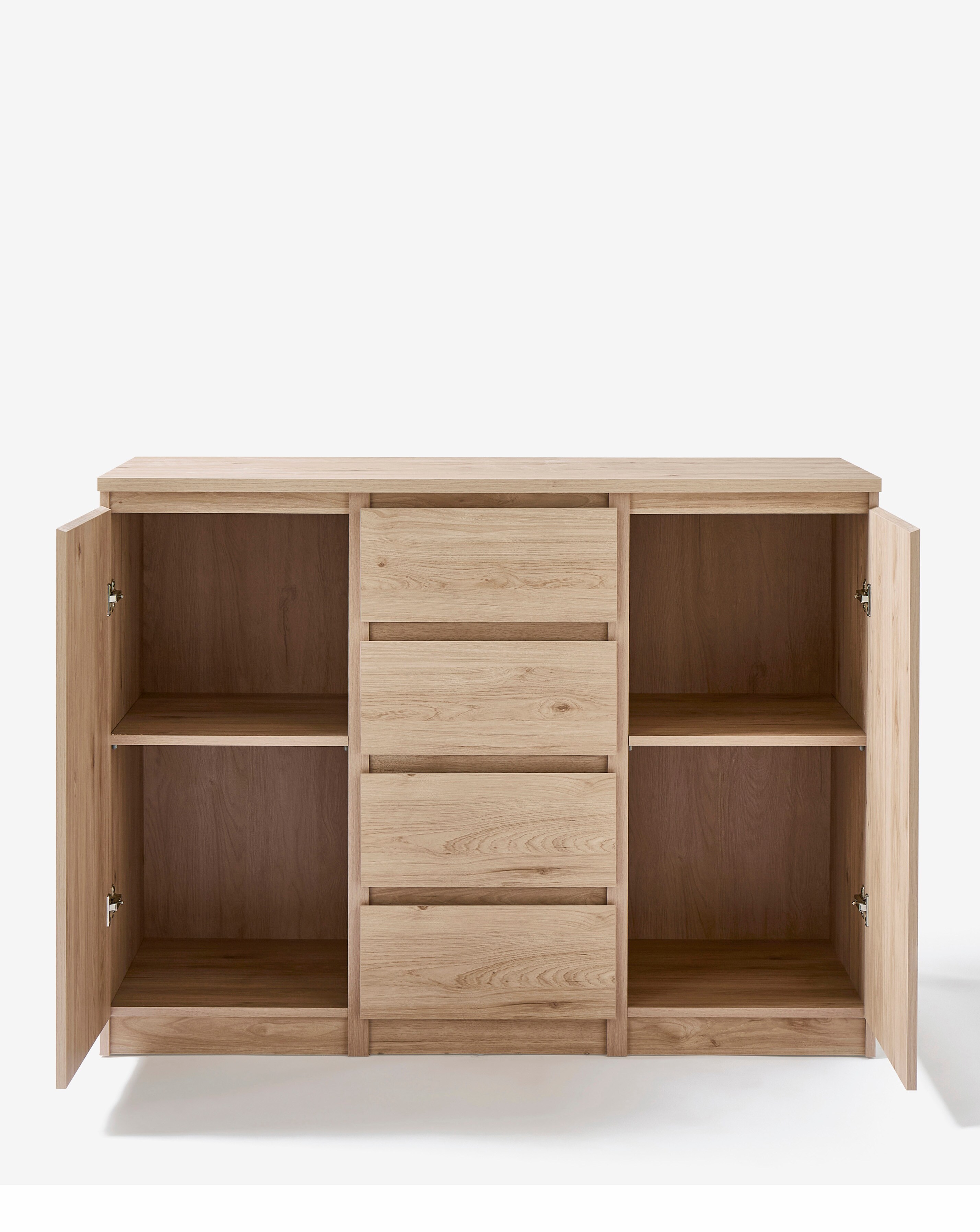 the Clayton Large Sideboard features 4 drawers and 2 cupboard doors. Easy self assembly required. This product is made from material from FSC -certified forests and/or reclaimed or controlled sources, supporting responsible management of the world's forests.