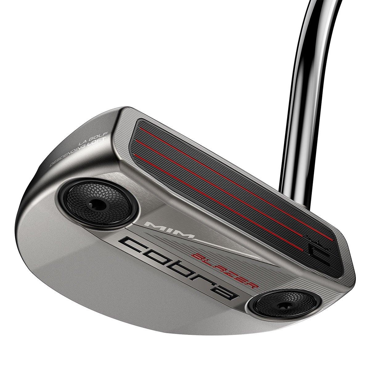 COBRA MIM Blazer Golf PutterKey Features -LA Golf’s Descending Loft TechnologyPrecision-Tuned Pebax® InsertMIM 304 Stainless Steel ConstructionAdjustable Weighting System KBS CT TOUR 120 ShaftSuper Stroke Zenergy Pistol 1.0 Grip1-Year GuaranteeThe MIM® Blazer is a traditional half-moon mallet designed for players with a neutral path. Crafted using Metal Injection Moulding (MIM®) and 304 stainless steel, it features a timeless, rounded shape with balanced weighting, perfect for golfers who prefer the classic look and feel of a traditional mallet with modern stability. LA GOLF’s DESCENDING LOFT TECHNOLOGYLA GOLF™’s patented Descending Loft Technology™ features four face lofts (4°, 3°, 2°, 1°) that optimise launch regardless of shaft lean or head position at impact. This innovative design ensures a consistent launch angle and promotes a true end-over-end roll for unmatched putting performance.PRECISION-TUNED PEBAX® INSERT The MIM® putter line debuts a high-performance Pebax® insert, engineered to deliver a soft yet responsive feel through advanced tuning. Its low-compression properties ensure uniform energy transfer across the face, resulting in more consistent ball speed and optimised roll on every putt.MIM® 304 STAINLESS STEEL CONSTRUCTION The MIM® putter family is crafted using a precise Metal Injection Moulding (MIM®) process, allowing for highly accurate head shaping and refined geometry. By using premium 304 stainless steel, each head achieves a clean, premium finish with elevated machined details that enhance both performance and visual appeal.ADJUSTABLE WEIGHTING SYSTEM The adjustable weighting system allows players to switch between lighter and heavier weights to achieve a personalised feel. Additional weights sold separately. (5g, 10g, 15g, 20g, 25g, 30g). Profile: Mallet, Hosel: Single Bend, Toe Hang: 0°, Lie Angle: 70°, Head Weight: 375g (34").