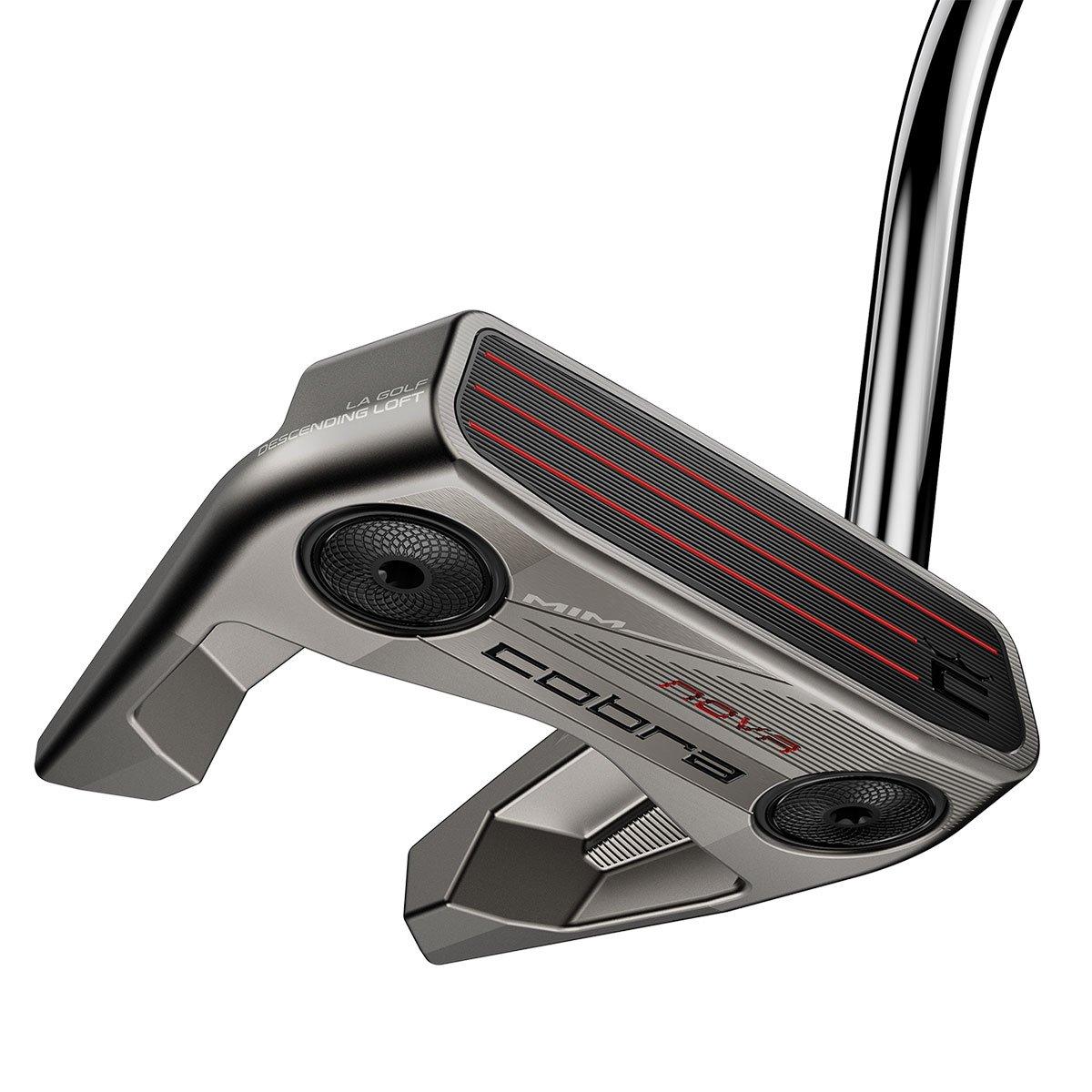COBRA MIM Nova Golf PutterKey Features -LA Golf’s Descending Loft TechnologyPrecision-Tuned Pebax® InsertMIM 304 Stainless Steel ConstructionAdjustable Weighting System KBS CT TOUR 120 ShaftSuper Stroke Zenergy Pistol 1.0 Grip1-Year GuaranteeThe MIM® Nova is a fang-style mallet designed for players with a neutral path. Constructed using Metal Injection Moulding (MIM®) and 304 stainless steel, it features perimeter-weighted stability in a compact shape, offering excellent balance, forgiveness, and a square look at address. LA GOLF’s DESCENDING LOFT TECHNOLOGYLA GOLF™’s patented Descending Loft Technology™ features four face lofts (4°, 3°, 2°, 1°) that optimise launch regardless of shaft lean or head position at impact. This innovative design ensures a consistent launch angle and promotes a true end-over-end roll for unmatched putting performance.PRECISION-TUNED PEBAX® INSERT The MIM® putter line debuts a high-performance Pebax® insert, engineered to deliver a soft yet responsive feel through advanced tuning. Its low-compression properties ensure uniform energy transfer across the face, resulting in more consistent ball speed and optimised roll on every putt.MIM® 304 STAINLESS STEEL CONSTRUCTION The MIM® putter family is crafted using a precise Metal Injection Moulding (MIM®) process, allowing for highly accurate head shaping and refined geometry. By using premium 304 stainless steel, each head achieves a clean, premium finish with elevated machined details that enhance both performance and visual appeal.ADJUSTABLE WEIGHTING SYSTEM The adjustable weighting system allows players to switch between lighter and heavier weights to achieve a personalised feel. Additional weights sold separately. (5g, 10g, 15g, 20g, 25g, 30g). Profile: Fang, Hosel: Single Bend, Toe Hang: 0°, Lie Angle: 70°, Head Weight: 375g (34").