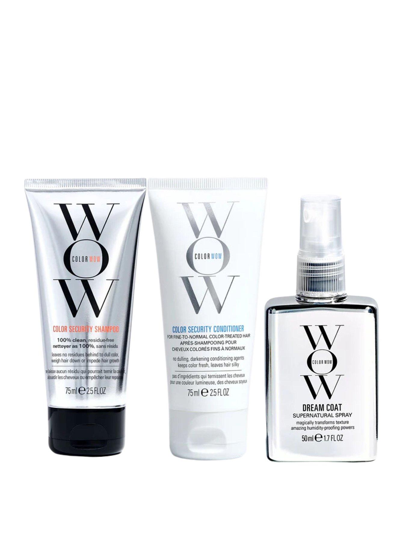 Color Wow Shampoo, Conditioner & Dreamcoat Spray Travel Trio Refresh Hair From Root To Tip With The Color Wow Color Security Shampoo; A Gentle Cleansing Formula That Forms A Luxurious Lather To Eliminate Impurities Without Over-Drying. Catering For Fine To Normal, Colour-Treated Hair, The Color Wow Color Security Conditioner Works To Hydrate, Soften And Maintain Vibrancy. Encourage Smooth, Sleek Hairstyles With The Color Wow Travel-Size Dream Coat Supernatural Spray, A Heat-Activated, Anti-Humidity Spray Designed For All Hair Types Including Wavy, Curly, Dry, Colour-Treated And Extensions.