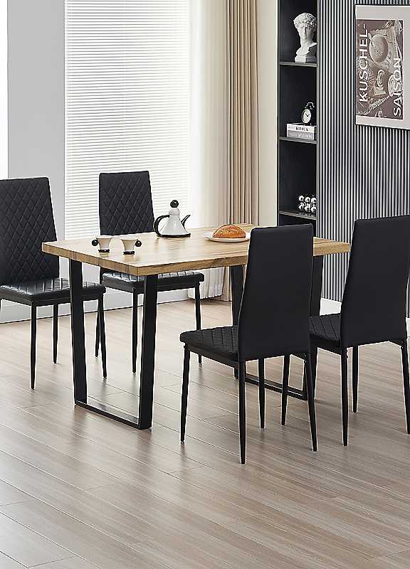 Transform your dining area with our stylish Colorado dining table set, featuring a contemporary design with 4 Emily faux leather. The chairs robust matt finish and thick padded seats offer comfort, while the table's oak effect top adds a chic touch. Each chair is designed for durability, supporting up to 150kg. Elevate your dining experience today!Chair maximum weight capacity: 150kgTable maximum weight capacity: 120kgTable dimensions approx. 120L x 80W x 75H cmTable thickness approx. 4 cmChair dimensions approx. 44L x 50W x 96H cm