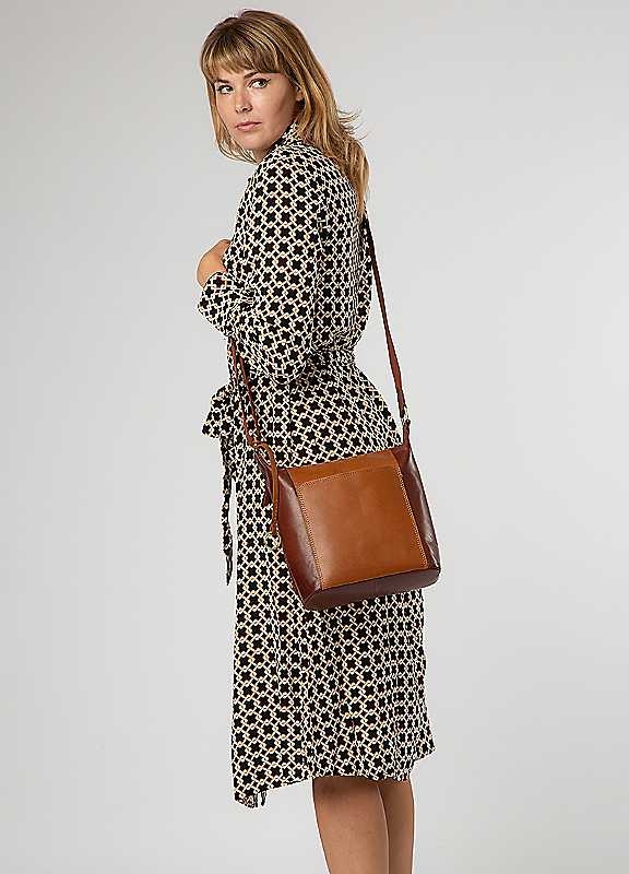 The Indigo' shoulder bag from Conkca is crafted from multi-toned leather for a beautifully unique finish. A classic zip-over top opens to reveal the spacious main compartment which comes lined for a flawless finish. On the interior, you will also find slip and zip pockets which are perfect for your phone and keys as well as maintaining an organised accessory. Additional storage is provided by slip pockets on the front and back of the design with a unique angular design. This style comes with an adjustable webbed canvas strap with a maximum drop length of 70cm and elevated with brass coloured metal fittings and zips.Outer: 100% LeatherLining: 100% CottonDimensions approx. 26H x 25W x 10D cm