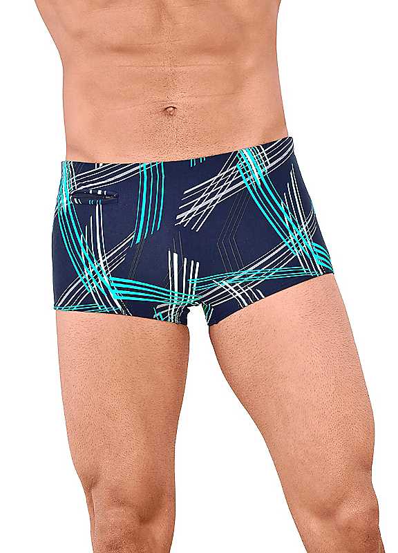 Sleek and stylish swimming trunks in a fresh and in-demand all-over print design. Practical too owing to threaded tie belt at waist, front lining and small zipped pocket. Washable 80% Polyamide, 20% Elastane