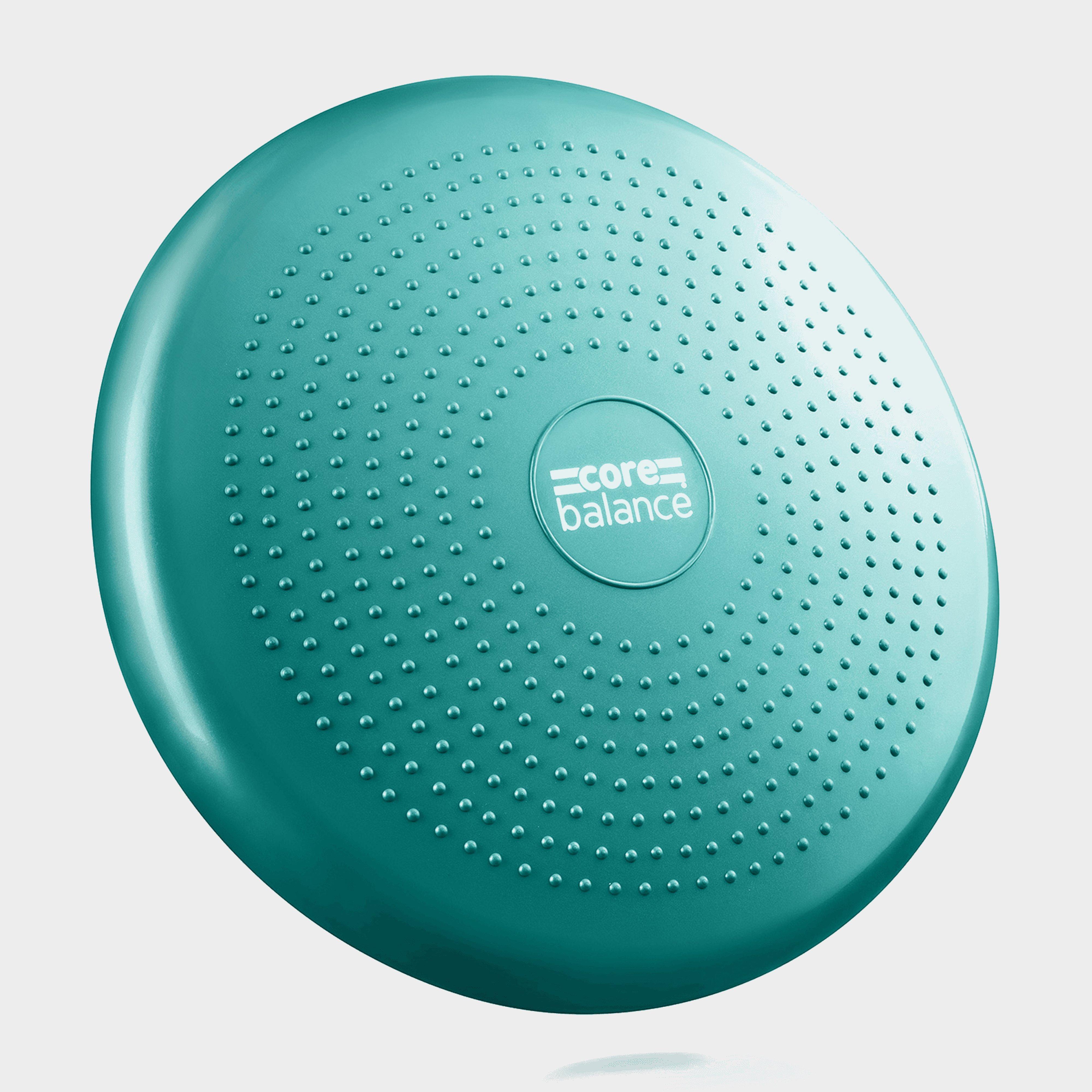 Core Balance Wobble Stability Cushion Challenge your core strength and balance with the Core Balance Wobble Stability Cushion. Its inflatable, unstable design pushes your stabiliser muscles into action as they work to keep you steady, making it a simple yet powerful way to build strength. Durable Anti-Burst PVC Made from medium-density PVC that's thicker and tougher than many alternatives, this cushion is built to last. Its anti-burst design ensures it will slowly deflate rather than burst if punctured. Acupressure Bobbles Features star-shaped acupressure bobbles to stimulate your muscles, target trigger points, and increase blood flowSmooth bobbles on the reverse prevent the cushion from sliding during useVersatile Fitness Tool Standing on the cushion activates stabiliser muscles in your ankles, knees, and lower backPerfect for improving balance, building lower body strength, and low-intensity recovery trainingHand Pump Included Easily inflate the cushion to your desired firmness with the included hand pumpAdd more air for a tougher balance challenge, or release some for greater stabilityInflated Size: 33cm