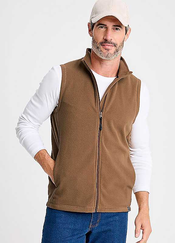 Perfect for layering up or keeping your core warm on cooler days, this gilet is made entirely from recycled polyester, breathing new life into recycled items such as plastic bottles and making it an eco-friendly choice and a wonderfully comfortable wear. Zip-through styling and two handy pockets complete this practical piece, which we've updated in seasonal colourways.Machine washable100% Polyester Micro Fleece | light brown jacket, gilet jackets, fleece brown jacket, mens gilets, gilet clothing, polyester jacket mens, vest with pockets, gilet fleece