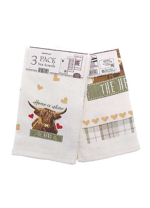 Country Club Highland Herd Set of 3 Tea Towels 68 x 40cm
