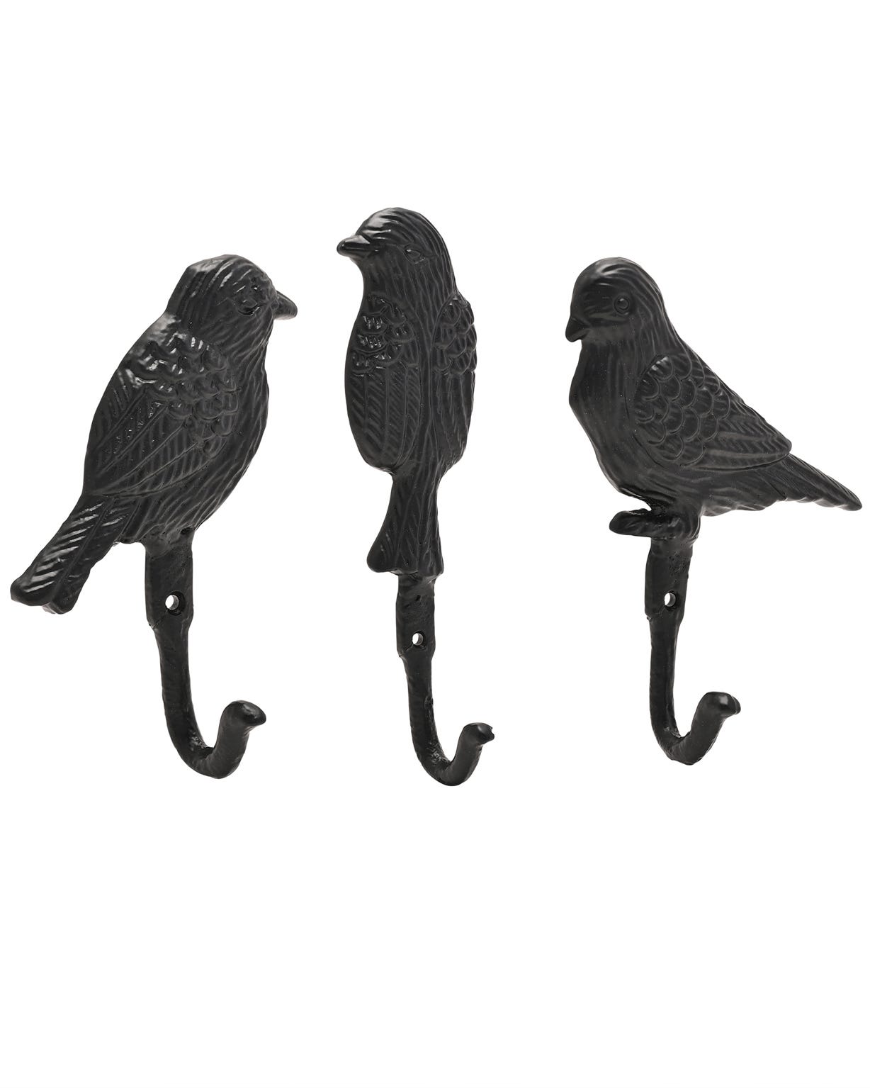 Country Living Set of Cast Iron Wall Hooks - Birds, Black, One Size