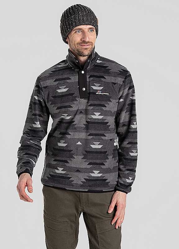 Insulating overhead top from Craghoppers. Shake up your winter wardrobe with this striking insulating top. Made from microfleece fabric, 'Dewlish' features a bold printed geometric design in a selection of seasonal colourways and a studded neck fastening. Stylish, easy-care warmth on demand.Brand: CraghoppersMachine wash at 30°C100% Polyester