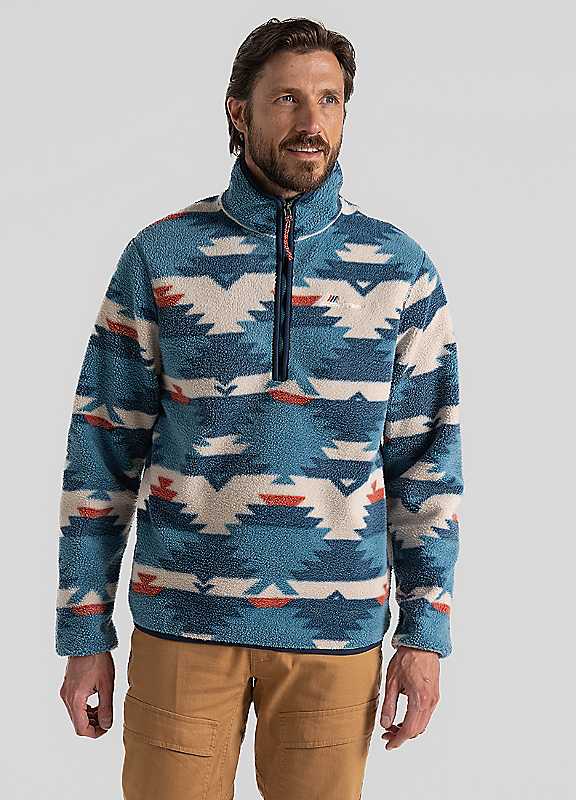 Insulating half-zip top from Craghoppers. 'Tatton' is an effective mid layer for colder conditions. Made from deep-pile borg fleece fabric featuring eye-catching geometric prints with contrast trim and corded zip pull. Brand: CraghoppersMachine wash at 30°C100% Polyester