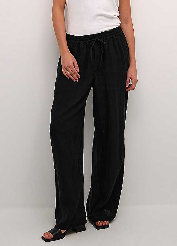 Cream Comfortable Black Linen Pants - Pitch Black - Size XS