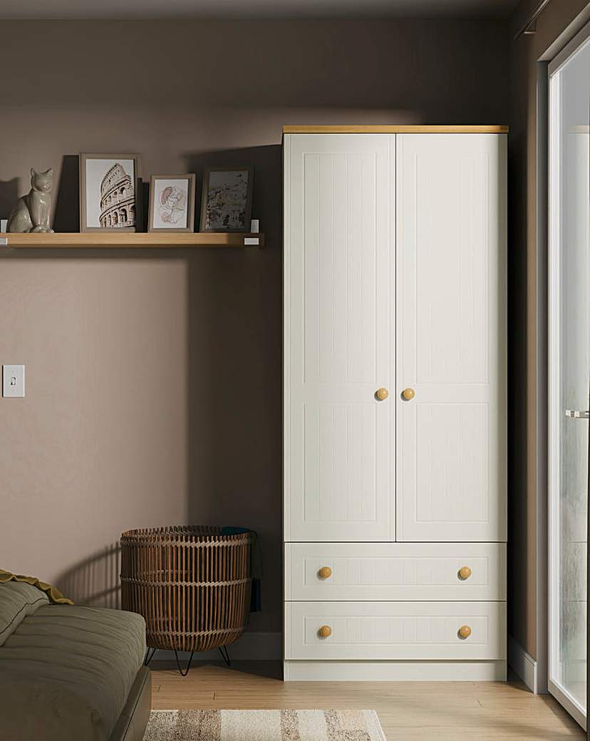 The Frances 2 door 2 drawer is finished in a cream colourway with an oak effect top, wood effect handles and is fully scratch resistant. This product is made to order in the UK, ready assembled for you to use as soon as it has been delivered. Please note: We are unable to deliver to Ireland, Scottish Islands, Isle of Wight and Isle of Man.