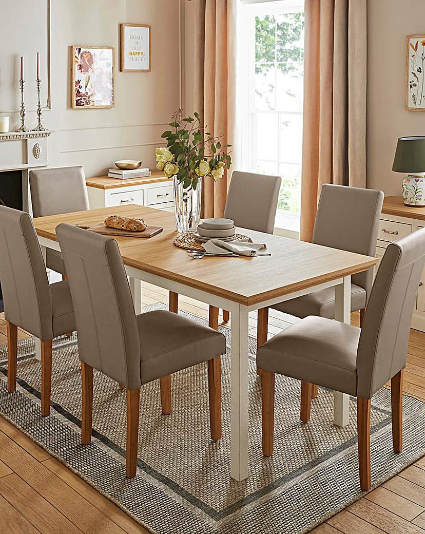 6 to 8 Seater Space Saving Extenable Dining Table with 6 Ava Faux Leather Dining Chairs.