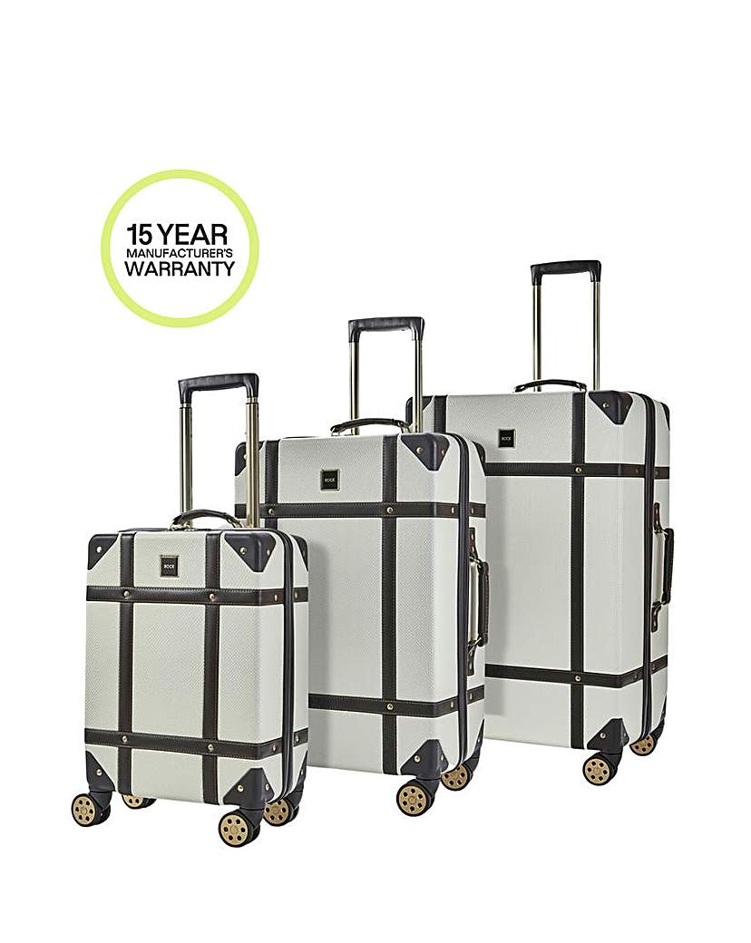 Made for Modern Explorers! This fashion forward trunk design embodies a classic timeless look with contemporary lightweight construction and strong, durable features. Built To Last, all Rock luggage products come with a 15year manufacturer's warranty against manufacturing defects arising from faulty workmanship or materials. 8 smooth rolling wheels and a telescopic, push-button handle will help you glide effortlessly on your travels. These suitcases are made of an impact-resistant, hard shell ABS material. Tough, reinforced corners protect belongings from all the bashes and bumps of baggage handling. For your complete peace of mind, Vintage cases are fitted with an integrated Travel Sentry-approved TSA combination lock. Travel Sentry allows your case to be legally opened by aviation security agencies without damaging your case. The interior has luxurious soft touch lining, a zipped pocket, and a mesh divider section. The design also features a convenient zipped inside pocket and elasticated packing straps to keep your clothes securely in place.