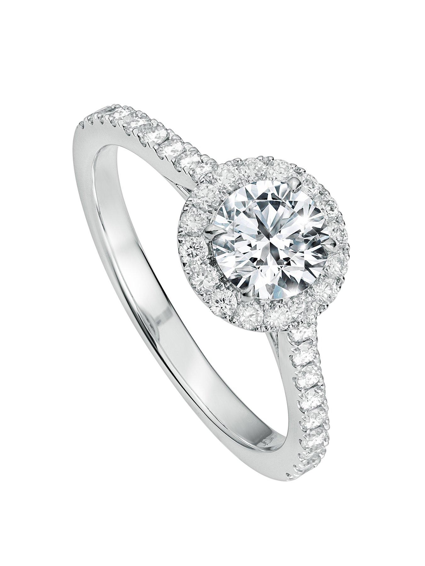 Created Brilliance Evelyn 18ct White Gold 1ct Lab Grown Diamond Halo Engagement Ring The Evelyn lab grown diamond ring is set with a stunning round brilliant cut diamond centre stone, framed by a glittering halo and paveset diamond shoulders. Beautifully crafted in 18 carat white gold, this gorgeous ring design is set with a total of 1ct of sparkling lab grown diamonds. The 0.65ct G VS2 round brilliant cut centre stone is IGI certificated and comes with a full diamond certificate. All Created Brilliance lab grown diamonds are hand selected. Each piece of Created Brilliance jewellery is accompanied by an authenticity certificate and presented in beautiful branded packaging. Created Brilliance lab grown diamonds are real diamonds. The only difference is that the origin is a laboratory and not the earth. Lab grown diamonds are identical to their natural counterparts, possessing the same chemical, physical and optical properties. Only an expert and a high-tech machine can tell the difference between a lab grown diamond and a natural diamond. Lab grown diamonds are more affordable than natural, mined diamonds, so with Created Brilliance you can buy a bigger and better quality diamond. Height: 6.1 MM Width: 1.7 MM Available Sizes: M Carat: 1 Fashion Jewellery Type: Rings Metal Type: White gold Ring Size: M Ring Type: Engagement Stone: Diamond Stone Colour: White Stone Type: Diamond