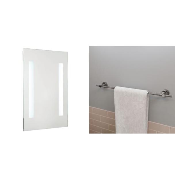 Croydex Malham Battery LED Bathroom Mirror 450 x 300mm + Croydex Pendle Flexi Fix Bathroom Towel Rail Chrome