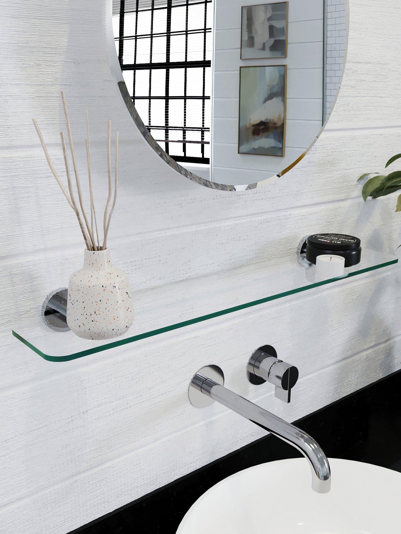 Croydex Metra Glass Shelf With Flexi-Fix Brackets Refresh Your Bathroom Simply And Beautifully With This Contemporary Shelf. The Chrome Plated Angular Brackets And Streamlined Design Means This Modern Accessory Is Sure To Make A Statement In Any Bathroom. As The 'No Drills' Pinnacle Of Bathroom Accessory Innovation, The Flexi-Fix Range Offers Premium Quality And Style. Fitting Is Extremely Easy With The Option To Either Screw Fix, Using New Or Existing Holes, Or Glue Fix Using The Provided High Strength Adhesive. With Flexi-Fix There'S No Stress, No Mess And No Fuss! Style With The Available Coordinated Wall Mounted Accessories For A Completed Look. Depth: 135 Mm Height: 54 Mm Width: 590 Mm Flexi Fix™ Installation - Glue Or Screw, Using New Or Existing Holes Universal 'X' Plate For Easy Updates Across The Flexi Fix™ Range