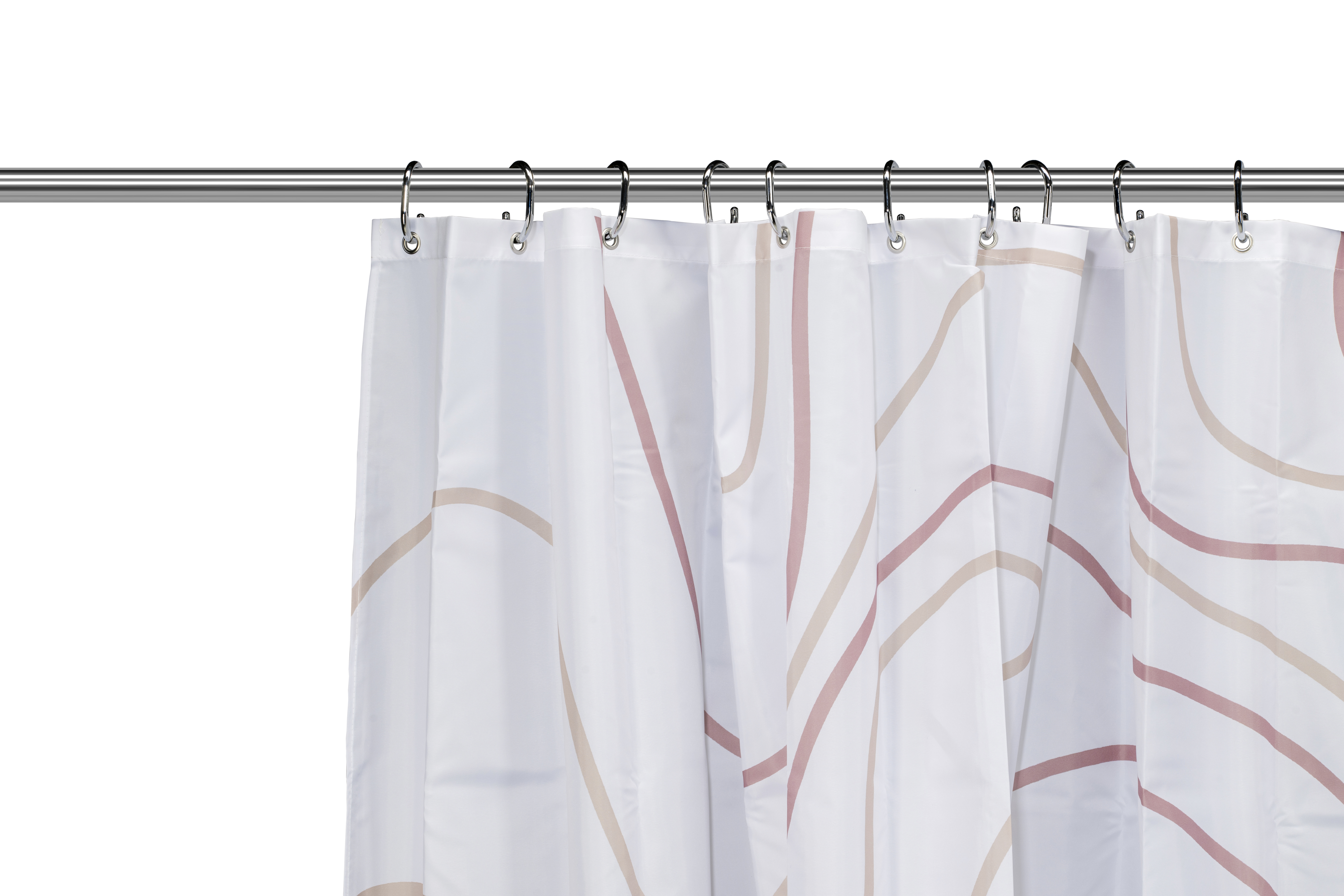 Croydex Swirl Shower Curtain - Dusty Pink - Soften your space with the soothing tones of this pink swirl print shower curtain. Crafted from durable, water-repellent fabric and fitted with tear-resistant eyelets, it’s ready to hang for an instant style boost. A weighted hem keeps it securely in place, so no more battling a clingy curtain mid-shower. With its gentle swirl pattern and warm, beige and pink hue, this curtain brings a touch of calm and elegance to any bathroom.