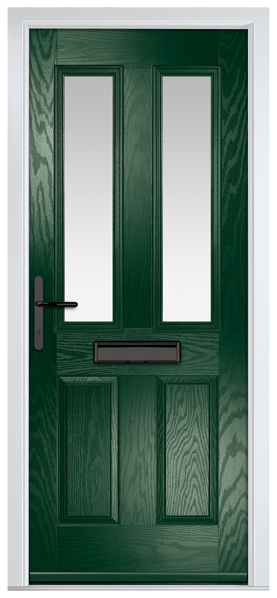 Crystal Carnoustie Green Right Hand GRP Composite Door with Stippolyte Glass - 920 x 2090mm