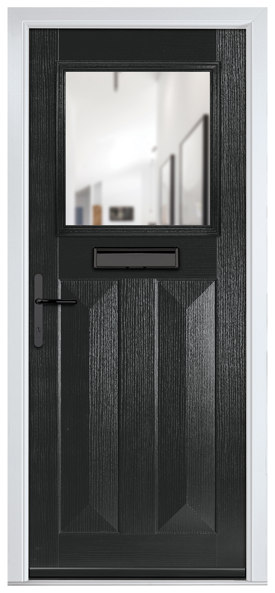 Crystal Eaton Black Right Hand GRP Composite Door with Clear Glass - 890 x 2090mm
