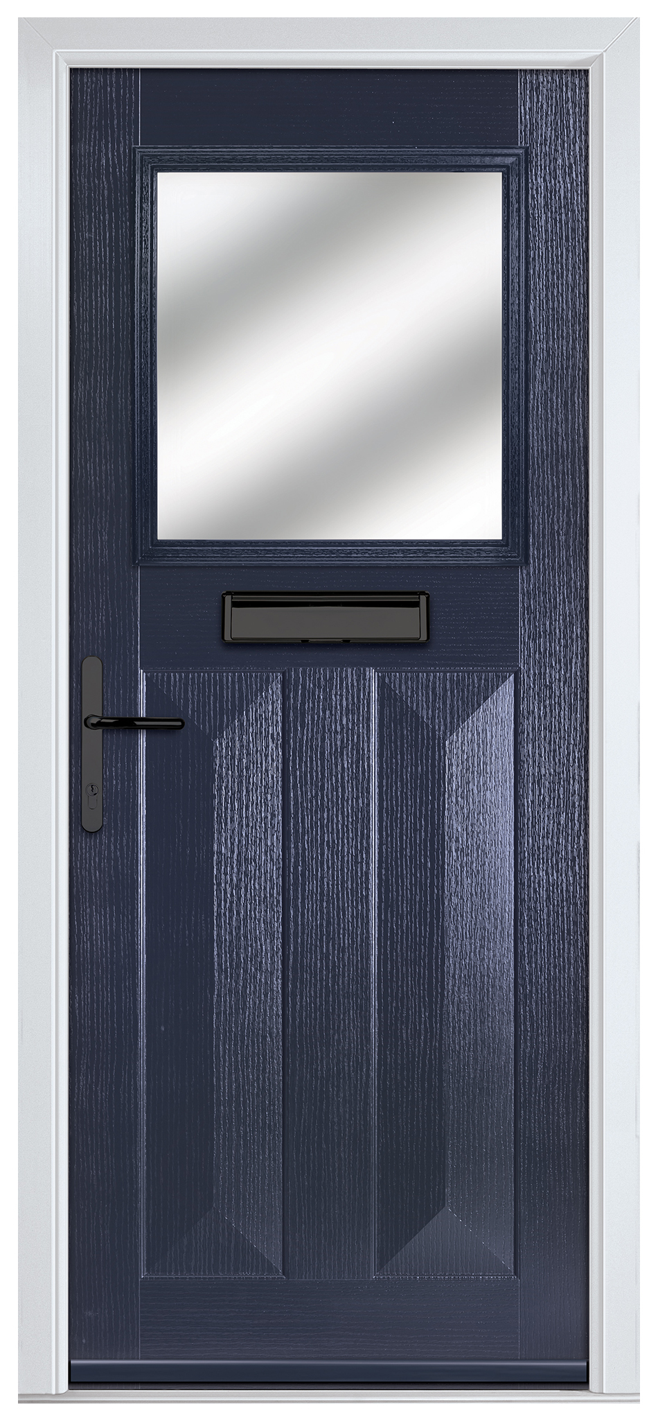 Crystal Eaton Blue Right Hand GRP Composite Door with Stippolyte Glass - 920 x 2090mm - Crystal composite doors feature a GRP skin and a high density polyurethane foam core to offer stability from the elements and water ingress. This door includes a high security locking system that works with Kubu - an intelligent alerting system for windows and doors; installed and ready to go. Kubu door sensors work hand-in-hand with the most secure multi-point door locks available and the cylinder of your choice, to provide a level of technology that enhances your home security. Designed to be completely concealed, Kubu provides discreet, yet helpful smart security benefits – without having to compromise the aesthetics of your home. The overall height of the door includes the cill.