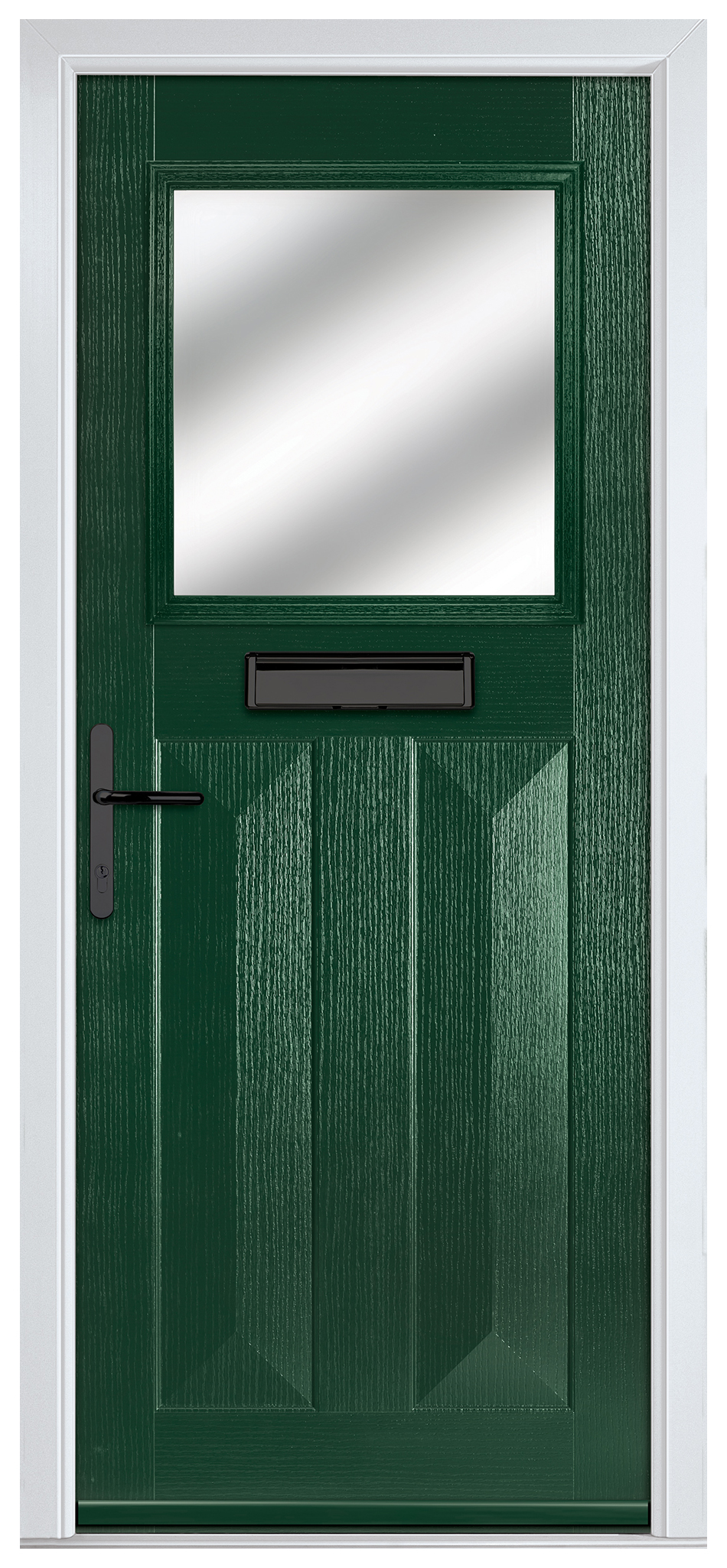 Crystal Eaton Green Right Hand GRP Composite Door with Stippolyte Glass - 920 x 2090mm - Crystal composite doors feature a GRP skin and a high density polyurethane foam core to offer stability from the elements and water ingress. This door includes a high security locking system that works with Kubu - an intelligent alerting system for windows and doors; installed and ready to go. Kubu door sensors work hand-in-hand with the most secure multi-point door locks available and the cylinder of your choice, to provide a level of technology that enhances your home security. Designed to be completely concealed, Kubu provides discreet, yet helpful smart security benefits – without having to compromise the aesthetics of your home. The overall height of the door includes the cill.