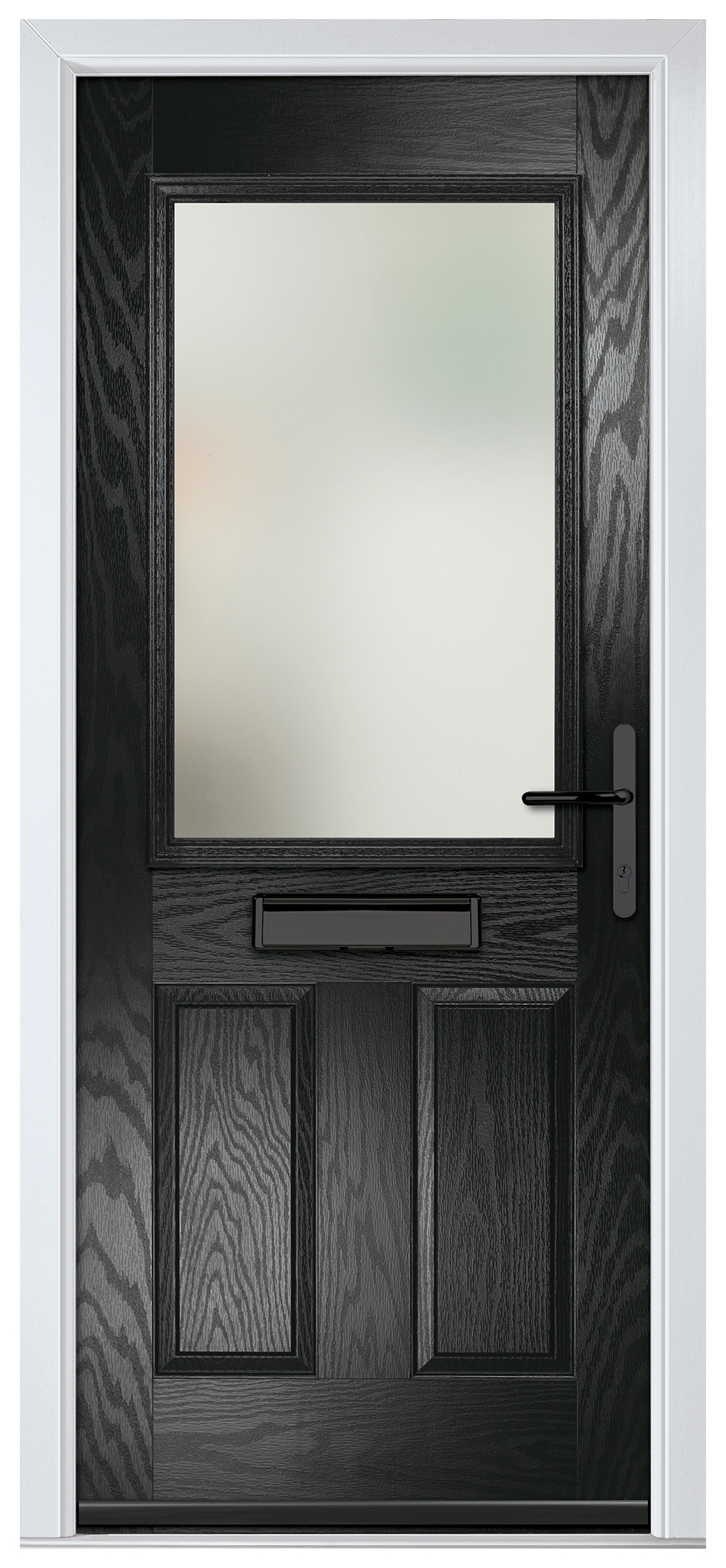 Crystal Lytham Black Left Hand GRP Composite Door with Stippolyte Glass - 920 x 2090mm
