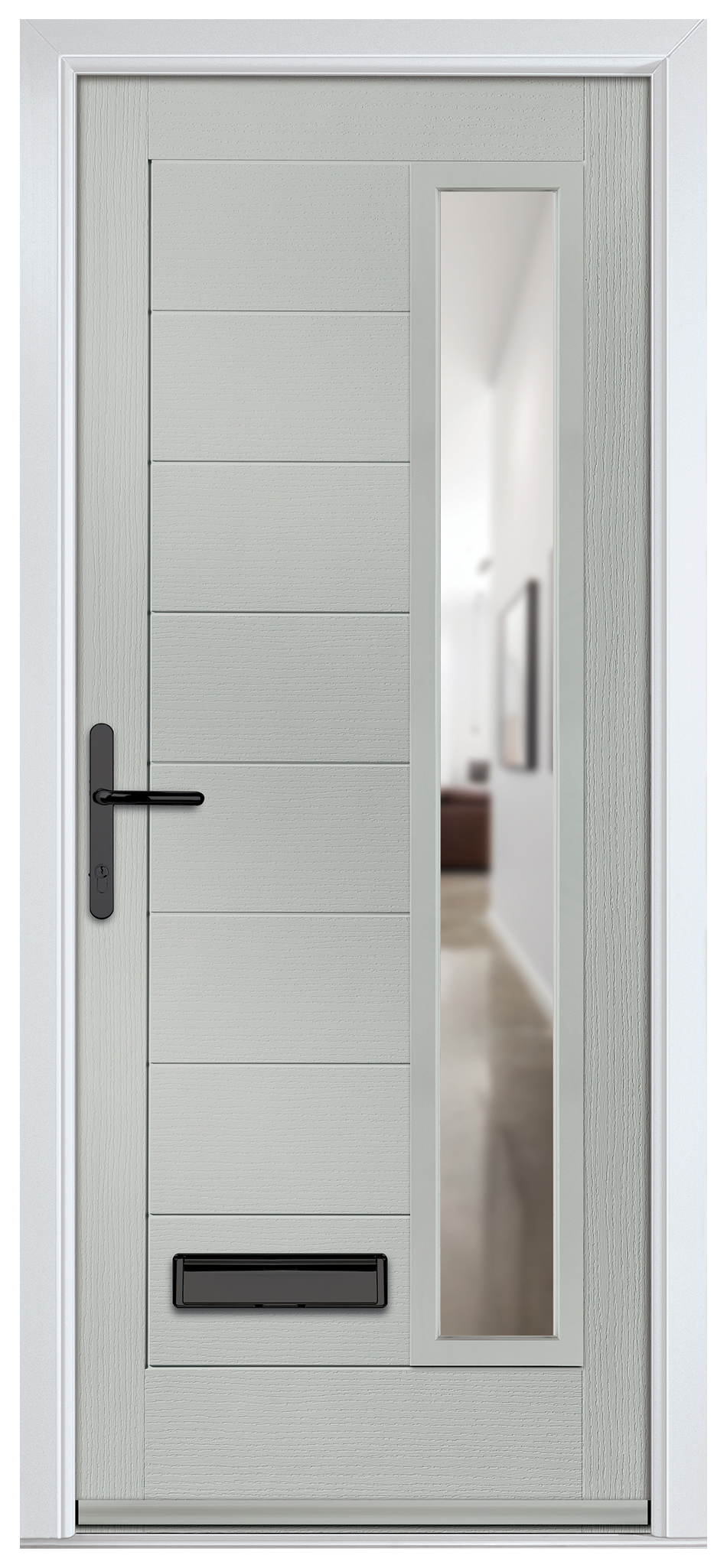 Crystal Monza Agate Grey Right Hand GRP Composite Door with Clear Glass - 920 x 2090mm - Crystal composite doors feature a GRP skin and a high density polyurethane foam core to offer stability from the elements and water ingress. This door includes a high security locking system that works with Kubu - an intelligent alerting system for windows and doors; installed and ready to go. Kubu door sensors work hand-in-hand with the most secure multi-point door locks available and the cylinder of your choice, to provide a level of technology that enhances your home security. Designed to be completely concealed, Kubu provides discreet, yet helpful smart security benefits – without having to compromise the aesthetics of your home. The overall height of the door includes the cill.