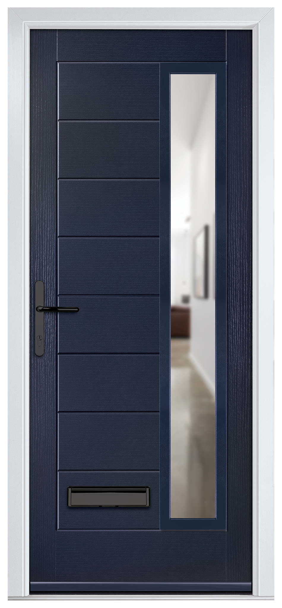 Crystal Monza Blue Right Hand GRP Composite Door with Clear Glass - 920 x 2090mm - Crystal composite doors feature a GRP skin and a high density polyurethane foam core to offer stability from the elements and water ingress. This door includes a high security locking system that works with Kubu - an intelligent alerting system for windows and doors; installed and ready to go. Kubu door sensors work hand-in-hand with the most secure multi-point door locks available and the cylinder of your choice, to provide a level of technology that enhances your home security. Designed to be completely concealed, Kubu provides discreet, yet helpful smart security benefits – without having to compromise the aesthetics of your home. The overall height of the door includes the cill.